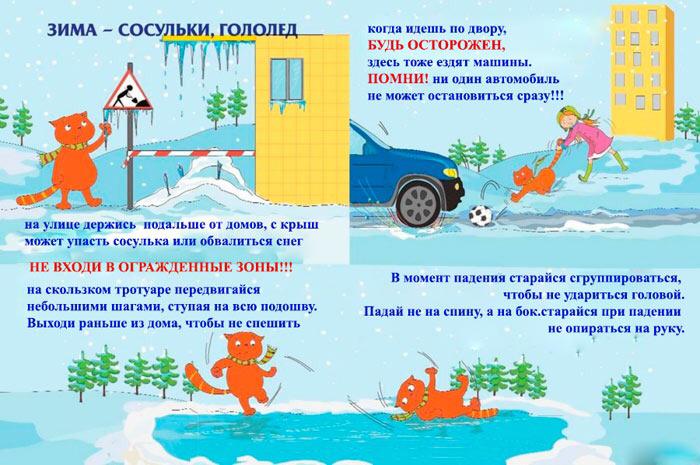 Памятка по безопасному поведению во время падения снега и сосулек с крыш зданий.